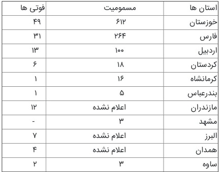 توضیح مدیریت سایت-پیراسته فر:این آمار ،تا روزجمعه ۲۳ اسفند ۱۳۹۸بنقل ازخبرگزاری فارس می باشد.