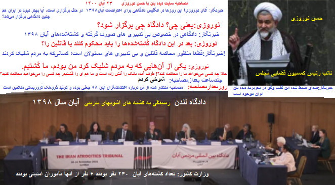 «حسن نوروزی»:«دادگاه لندن» کُشتهشدهها را محکوم میکند یا قاتلین را!؟...یکی از آنهایی که به مردم(آشوبگران) شلیک کرد «من بودم»، ما کُشتیم. حالا چه کسی میخواهد ما را محاکمه کند!؟.