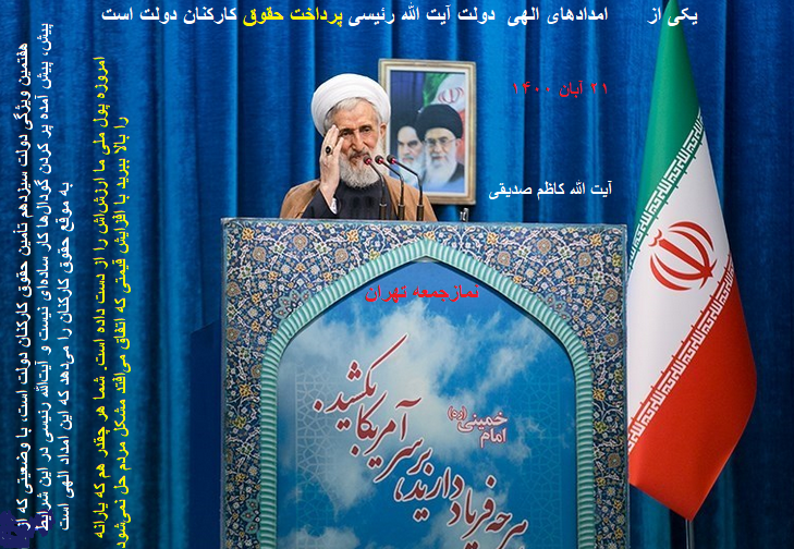 امام جمعه تهران: آیتالله رئیسی به موقع حقوق کارکنان را میدهد که این امداد الهی است.