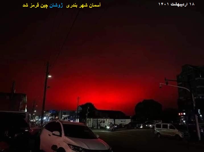 توضیح مدیریت سایت-پیراسته فر:«قرمزی آسمان شهر ژوشان» (استان ژجیانگ شرقی چین)ناشی از «شکست و پراکندگی نور چراغهای کشتی» دراین شهر بندری بوده است(احتمالاً).