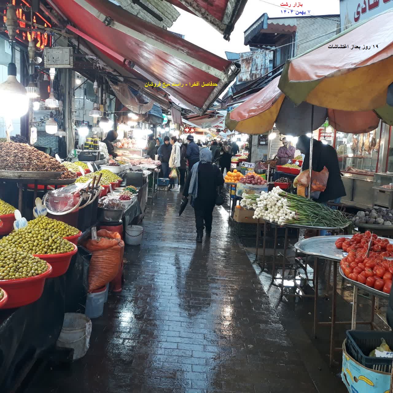 بازار رشت ۷ بهمن ۱۴۰۴ راسته ماهی فروشان ۱۹ روز بعداز اغتشاشات