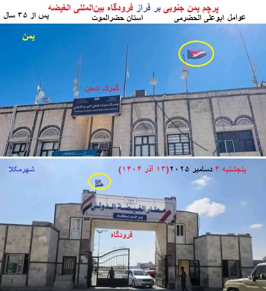 پرچم جنوب برای اولین بار پس از ۳۵ سال بر فراز «فرودگاه الغیضه» و «اداره گمرک شاهن»به اهتزاز درآمد.(۱۳ آذر ۱۴۰۴)