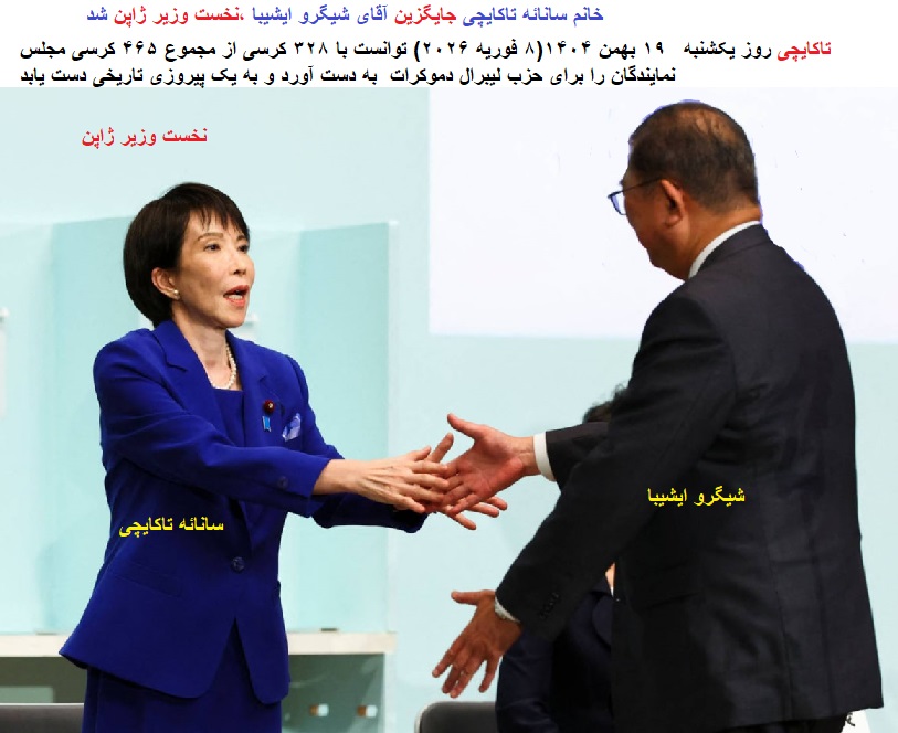 سهشنبه ۱۱ نوامبر ۲۰۲۵(۲۰ آبان ۱۴۰۴)خانم«سانائه تاکایچی» جایگزین(نخست وزیر شیگرو ایشیبا)شد.