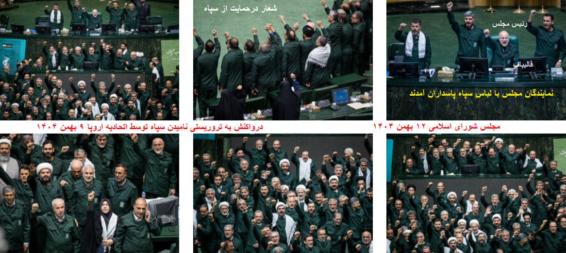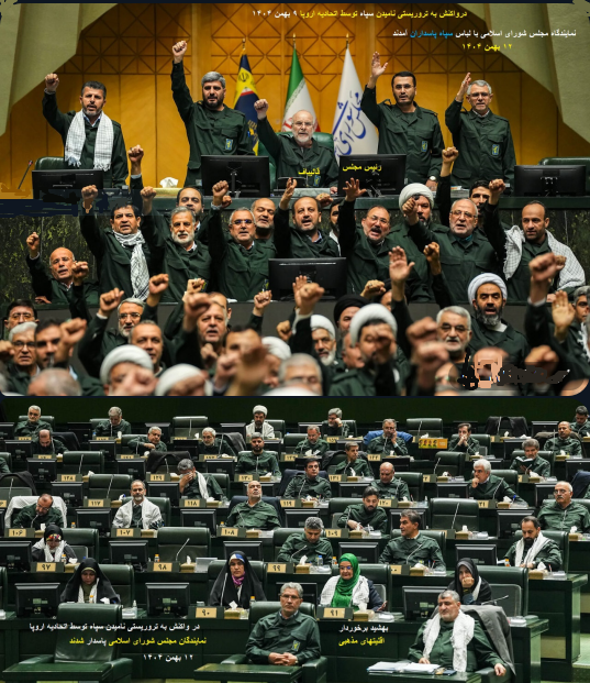 نمایندگان مجلس شورای اسلامی درواکنش به این اقدان نابخردانه اتحادیه اروپا«پاسدار»شدند(لباس سپاه برتن کردند)یکشنبه ۱۲ بهمن ۱۴۰۴