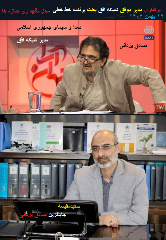 برکناری مدیر شبکه افق(صادق یزدانی)در پی پخش بخشی از برنامه «خطخطی» با محتوای موهن نسبت به جانباختگان اغتشاشات شامگاه پنجشنبه ۱۸ دی ۱۴۰۴ مجری برنامه«خطخطی»(محمدحسین محبی)با طرح سئوال ۴ گزینه(محل نگهداری جنازه ها)درکدام یخچال؟.