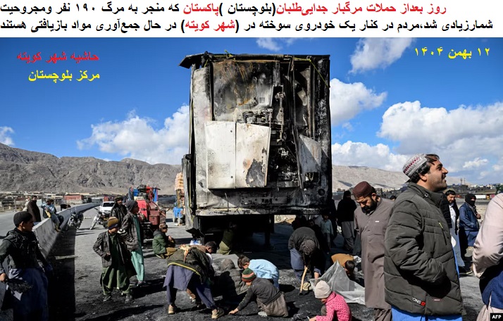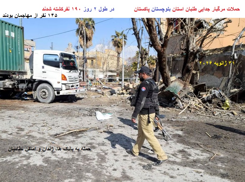 حملات مرگبار جداییطلبان در بلوچستان پاکستان ۱۹۰ نفرکشته شدند که ۱۴۵ نفرازمهاجمان هستند./شنبه ۱۱ بهمن ۱۴۰۴( ۳۱ ژانویه ۲۰۲۶)