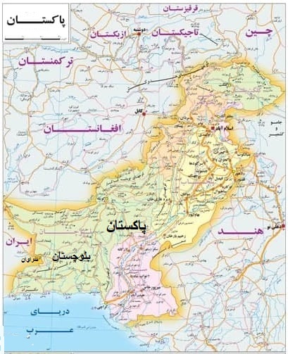 «نقشه کشور پاکستان»(کشورهای همسایه پاکستان)