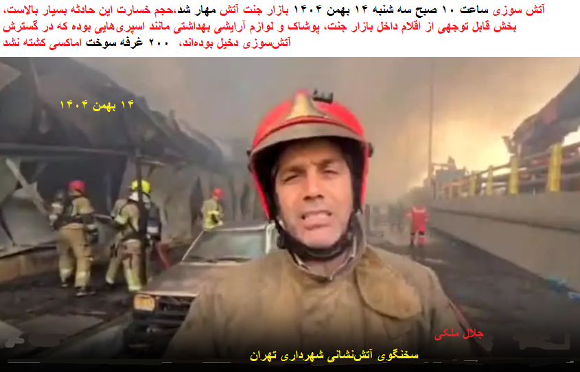 آتش سوزی در(بازارجنت) تهران ۱۴ بهمن ۱۴۰۴